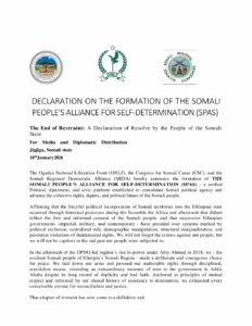 A New Political Turning Point: The Formation of the Somali People’s Alliance for Self-Determination